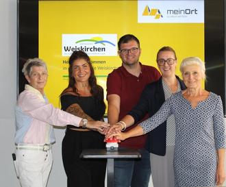 Startschuss für die neue meinOrt App der Gemeinde Weiskirchen (v.l.n.r: Nicole Stecher, Vanessa Büchel, Alexander Passer (Gemeinde Weiskirchen), Nina Vollmar (Linus Wittich Medien GmbH), Helma Kuhn-Theis (1. Beigeordnete)