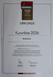 Mit Stolz können wir jetzt das „Focus-Gesundheits-Siegel“ „Top-Kurort 2026“ tragen.