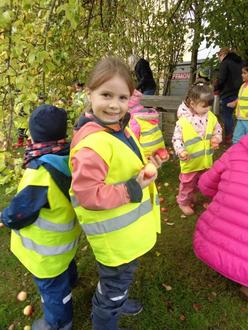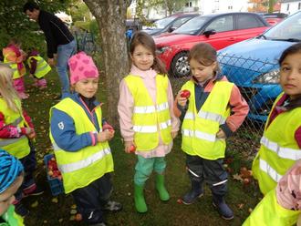 Wie in jedem Jahr im Herbst machten sich alle Kinder und Erzieherinnen auf den Weg zur Apfelernte bei der Seniorenresidenz St. Mattheis.