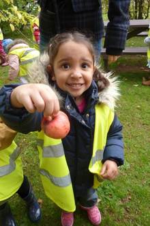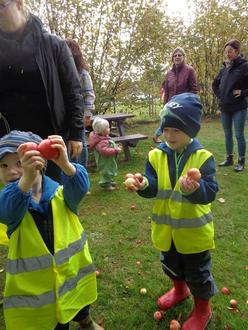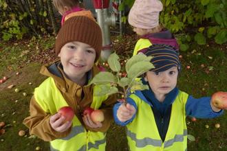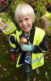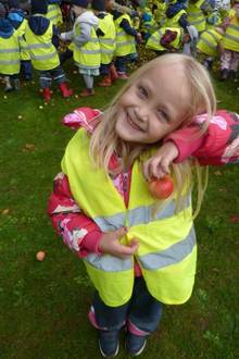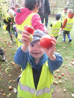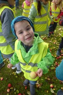 Sinnvoll und wichtig ist es dem Kinderhaus St. Jakobus, wenn Kinder selber erfahren können, woher beispielsweise das Obst (hier Äpfel) kommt, dass dann beim Frühstück angeboten wird.