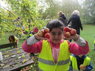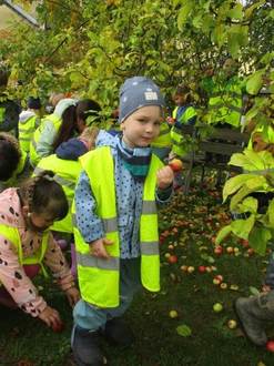 Die Ernte ist in diesem Herbst reichlich ausgefallen, so dass diese auch gemeinsam mit den Kindern zu Most, Apfelpfannkuchen, Apfelmus usw. verarbeitet werden können. Ein Teil der Äpfel wird für den Winter eingelagert. In Zeiten der gestiegenen Lebensmittelkosten ist diese Ernteaktion auch ein Beitrag die Frühstückspauschale so günstig wie möglich zu erhalten. Außerdem wird der nachhaltige Umgang mit Lebensmitteln erlebbar gemacht.