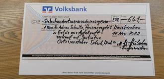 In kleiner Runde wurde nunmehr der Erlös aus dem Apfelsaftverkauf von Ortsvorsteher Stefan Schuh an Adrian Schmitz, 1. Vorsitzender des Vereines Herzensengel e. V. übergeben. Dank einer reichlichen Apfelernte der gemeindeeigenen Apfelbäume hinter der Hochwaldhalle konnten 600 l. Apfelsaft gewonnen werden. Die 120 Apfelsaft-Bag’s, gefüllt mit je 5 l Apfelsaft, wurden allesamt zum Preis in Höhe von 9,80 Euro verkauft. Nach Abzug der Kosten für die Kelterei Schmitt in Merzig-Menningen kam ein Reinerlös von 641,- Euro zustande.