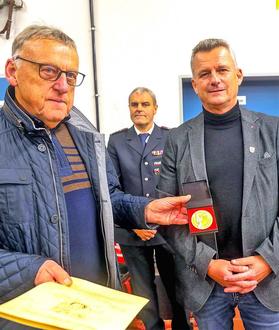 Durch seine langjährige ehrenamtliche Tätigkeit als Feuerwehrmann hat er sich im aktiven und jetzt im inaktiven Feuerwehrdienst mit großer sozialer Kompetenz in hohem Maße um das Gemeinwohl in unserer Gemeinde verdient gemacht.