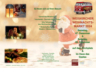 Der Weiskircher Weihnachtsmarkt, von Samstag, 07.12.2024, bis Sonntag, 08.12.2024, findet auf dem Kirchplatz und im Haus des Gastes statt.