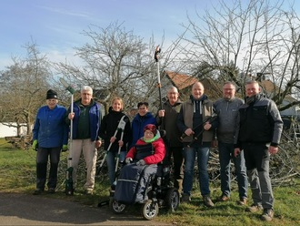 Nachdem die Gärtnermeisterin beim Gemeindebauhof, Sarah Feit zusammen mit ihren Kollegen Dietmar Hero sowie Markus Klasen vor einigen Tagen die Mitglieder der „IG Apfelsaft“ dankenswerterweise in die Geheimnisse des Obstbaumschneidens eingewiesen hatte, übernahmen nunmehr genau diese IG-Mitglieder eigenständig den sogenannten „Erhaltungsschnitt“ einer Reihe von Apfelobstbäumen im Hallengarten direkt neben der Hochwaldhalle.