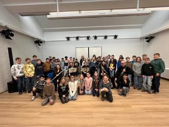 Am Donnerstag, den 29.01.2026 wurde die neue Aula der PDG zum Konzertsaal umgebaut, denn die PDG bekam Besuch von vier Musikerinnen und einem Musiker der Deutschen Radiophilharmonie. Das Bläserquintett, bestehend aus Querflöte, Oboe, Horn, Fagott und Klarinette, präsentierte allen Schülerinnen und Schülern der Klassenstufe 5 in zwei Veranstaltungen die „Bilder einer Ausstellung“ von Modest Mussorgsky. Das ursprünglich als Klavierzyklus komponierte Stück des russischen Komponisten aus dem Jahre 1874 thematisiert den Gang durch eine Ausstellung der Zeichnungen und Bühnenentwürfe seines verstorbenen Freundes Wiktor Hartmann und wird als ein Musterbeispiel für Programmmusik gesehen. Die Musiker des Rundfunkorchesters des SR und SWR nutzten eine Fassung für Holzblasensemble, die durch Klangfülle und Wucht begeistern konnte. Dank der jeweils einleitenden Erklärungen zu den einzelnen Sequenzen des Werkes konnten die Schülerinnen und Schüler die musikalische Umsetzung der Gemälde gut nachvollziehen. Zudem gelang es den Musikern die Kinder aktiv einzubinden und regten sie z. B. an, komplizierte Takte mit einer Bodypercussion mitzuklatschen. Der gut einstündige Auftritt für jede Gruppe wurde durch die Vorstellung der einzelnen Instrumente und der unterschiedlichen Art der Klangerzeugung perfekt abgerundet. Schulleiter Richter und die anwesenden Lehrkräfte waren begeistert von der der perfekten Einbindung des Auftritts in den Musikunterricht der Klassenstufe 5, der die Unterrichtsthemen Instrumentenkunde und Programmmusik in beeindruckender Art veranschaulichte. Die Kinder waren ebenfalls begeistert und genossen das Konzert, die Mitmachaktionen und die Erklärungen der freundlichen und zugewandten Musiker gleichermaßen.