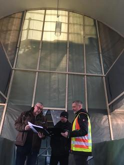 Während der laufenden Sanierungsarbeiten findet jeden Mittwoch die Baubesprechung statt. Im Bild von links: Bauleiter Frank Lang, Teamleiter Hoffmann der Firma Bennert und Herr Reißig von der Bauverwaltung der Gemeinde