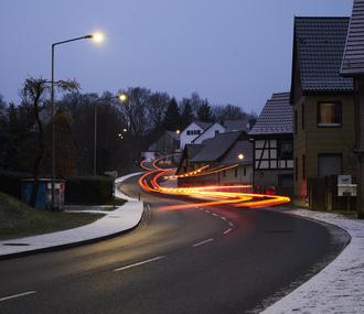 LED-Straßenlaternen erhellen die Hörseltalstraße in Schönau.
