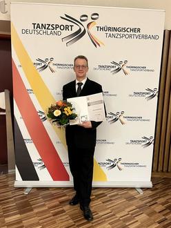 Die Auszeichnung wurde ihm im Rahmen der Galaveranstaltung der Thüringer Tanzsport Tage in der Landessportschule Bad Blankenburg am 06.01.2024 durch den Präsidenten des Thüringischen Tanzsportverbandes e.V., Dr. Holger Schilling, verliehen.