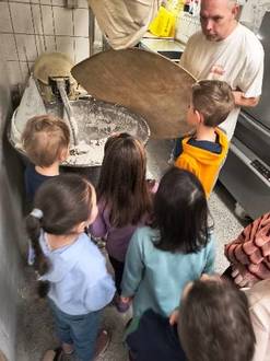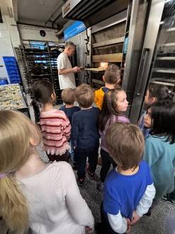 Unsere Schulanfänger besuchten die Backstube der Bäckerei Schnell und krempelten die Ärmel hoch. Sie halfen beim Plätzchen backen wie die Profis. Die großen Maschinen und riesigen Teigmengen wurden bestaunt. Die Plätzchen haben wir anschließend in allen Gruppen verteilt und zur Weihnachtsfeier vernascht.
