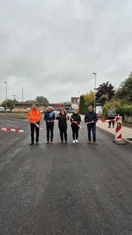 | • | Herstellung von rund 1.500 m² bituminöser Fahrbahnflächen und ca. 1.400 m² Betonpflasterflächen für Gehwege, Warte- und Parkbereiche |