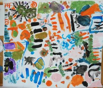 Dabei entstand mit Spaß und Freude ein großes, buntes Gemeinschaftsbild und die Kinder freuen sich schon auf die nächste Runde „Malen nach Musik“.