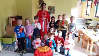 Am 24. Februar ist ein ganz besonderer Tag. Sandra Römhild-Hort, Erzieherin im Kindergarten Bambino, ist heute zu Gast. Über China weiß sie eine ganze Menge. Wir staunen, als wir unseren Gruppenraum betreten. Sandra sieht aus wie eine richtige Chinesin. Sie trägt ein wunderschönes rotes Gewand, Hanfu genannt. Rot und Gold sind in China die Glücksfarben. 2023 ist in China das Jahr des Hasen. Deshalb hat Sandra auch ein rotes Häschen dabei. Sie begrüßt uns mit einem freundlichen ni hao. Das heißt so viel wie: „Guten Tag oder Hallo!“