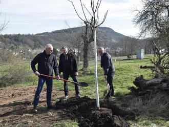 Im Rahmen des Projektes „Renaturierung von Streuobstwiesen“ wurde an der „Apfelallee“ am Freitag, dem 15.03.2024, mit der Pflanzung neuer Obstbäume begonnen.