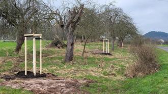 Es wurden durch die Firma Garten- und Landschaftsbau Richter mehrere Apfel- und Birnenbäume gepflanzt. Dieses Projekt dient dem Klimaschutz und der insektenfreundlichen Gestaltung von Streuobstwiesen. Bei der Auswahl der Obstsorten wurde sich nach Empfehlungen des NABU gerichtet und für unsere Klimazone geeignete alte und regionale Sorten ausgewählt.