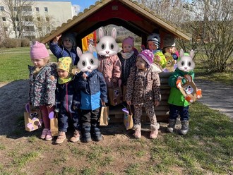 Die Kinder der Zebragruppe suchten und fanden ihre Osterüberraschung im Spielgarten. Sie hatten leuchtende Augen und viel Freude an dem bunten Treiben. Gemeinsam wurden die gefundenen Nester begutachtet. Jedes Kind konnte sein Ostergeschenk mit nach Hause nehmen und stolz seine Schätze präsentieren.