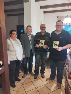 von links: 1. Vorsitzende Beate Lochner, 2. Vorsitzender Mario Lange und Zuchtgemeinschaft Thomas & Norman Petter, Auszeichnung für 25 Jahre Zuchtleistung