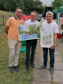 Am Ende des Festes hatte Künstler Mehmet Bostanci eine Überraschung für den Bürgermeister Herrn Jörg Schlothauer. Er hat einige Gemälde, die er schon für das Fest in der vergangenen Woche in Wutha fertiggestellt hat, an Herrn Schlothauer verschenkt.