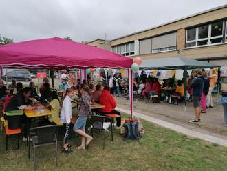 Beim Fest gab’s Leckeres vom Grill, Kuchen und Getränke, Spiel und Spaß für Kinder und live Musik! Viele lokale Musiker und Bastian Coburger aus Eisenach mit seiner Gitarre waren auf der Bühne. Die Gäste haben die Musik und den köstlichen Grill genossen und mit den anderen Nachbar*innen eine gute Zeit verbracht.