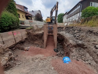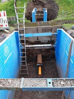 Nach Abschluss der Bachquerungsarbeiten in der 21.KW wurde mit den Arbeiten am Hauptkanal begonnen. Hier wurden bereits bis zum Ende der 28. KW von erforderlichen ca. 600,00 m die ersten ca. 150,00 m geschafft.