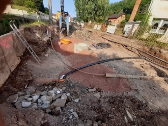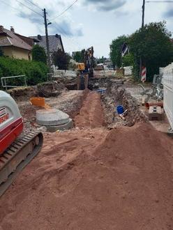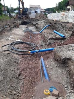 Um die Anwohner auf der linken Seite in Richtung Dorfmitte (hinter den Mosbach) an die Versorgungsleitungen anschließen zu können, wurde pro Anschlussstelle unter dem Mosbach im Bohrverfahren eine Bachquerung hergestellt. In diese 21 Bohrungen wurden Leerrohre für Wasser, Strom, Breitband und Abwasser eingezogen.
