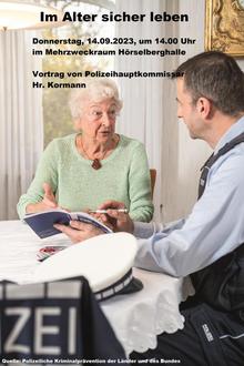 Im Rahmen der polizeilichen Kriminalprävention lädt die Gemeindeverwaltung und Polizeihauptkommissar Herrn Kormann am Donnerstag, den 14.09.2023 um 14.00 Uhr alle interessierten Bewohner*innen zum Vortrag „Sicher im Alter leben“ mit anschließender Gesprächsrunde in die Hörselberghalle ein.