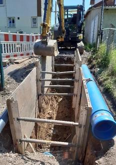 In der Theo-Neubauer-Straße 198 wurde bereits Durchlassbauwerk eingesetzt und mit dem Verfüllen begonnen.