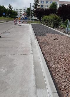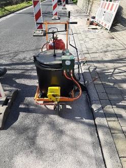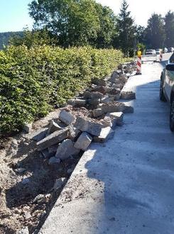 Begonnen wurde mit der Reparatur der Bordanlage in der Weinbergstraße. Hier wurden 153 Rundborde ausgestemmt, aufgenommen, teilweise entsorgt und neu gesetzt. Es wurden 38 komplett erneuert, auf 153 m wurde der Asphalt angeschnitten, neu vergossen, Pflasteranpassungen vorgenommen und ca. 30 m² Pflaster aufgenommen und neuverlegt.