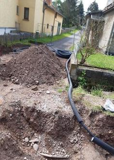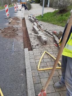 In der Waldbadstraße 22 mussten erst Wasser- und Stromleitung umverlegt werden, damit auch hier die Maßnahme gefahrenfrei beginnen konnte.