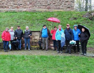 Eine Woche später, am Sonntag dem 16. April 2023, war uns der Wettergott nicht so hold. Trotzdem trafen sich elf wanderfreudige Mitglieder an der Burgruine in Winterstein zu einer gemütlichen Wanderung. Zuerst wurde natürlich das Hundegrab besucht, denn in Winterstein, so weiß jedermann „Ist der Hund begraben“! Auch über die Ruine aus dem 12. Jahrhundert wurde einiges von unserem Vorsitzenden erläutert. Dann begaben wir uns auf den Rundwanderweg, der uns immer am Waldrand entlang zum Sportplatz führte. Die steil aufragende Felswand des Treppensteins fasziniert immer wieder. Im Talgrund wuchs der Bärlauch und es roch wie in einer Zwiebelküche. Der Hunger meldete sich und wir begaben uns zum Gasthaus „Hirsch“, wo wir vorbestellt hatten. Nach dem Essen begutachteten wir die Baumaßnahmen der Hauptstraße in Winterstein, die nur für Fußgänger passierbar ist. Diese dauern an und für die Anwohner ist es eine Geduldsprobe. Für uns war es ein schöner Tag trotz des Nieselregens.