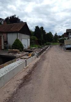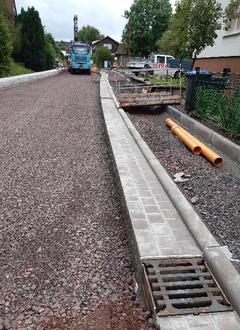 Leider sind die Bauarbeiten im Moment im Bereich unserer Durchlässe etwas zum Erliegen gekommen, das liegt aber alleine an der Asphaltbeschaffung. Hier ist die Wiederaufnahme der Arbeiten für die 39./40.KW geplant, da erst dann wieder Asphalt geliefert werden kann.