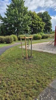 Gemeinsam mit dem Bauhof und der Leiterin der integrativen Kindertagesstätte „Bambino“ wurde schnell ein geeigneter Platz im Garten der Einrichtung gefunden. Dank der Unterstützung der Firma Garten- und Landschaftsbau Richter aus Wutha-Farnroda stand auch ein passender Baum zur Verfügung.