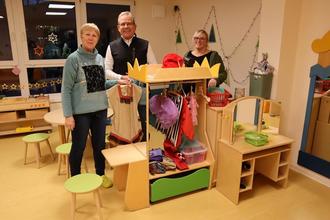 Im Zuge einer Aufstockung sind neue großzügige Gruppenräume entstanden mit den dazugehörigen Sanitärbereichen. Hier kann auf die Bedürfnisse der Kinder sehr gut eingegangen werden, das wird insbesondere möglich durch speziell auf die Altersbereiche der Kinder angepasste Mobiliar sowie besonderen Spiel- und Beschäftigungslandschaften. Auch das Personal hat beste Bedingungen, wovon sich Herr Rossel selbst überzeugen konnte und was ihm auch das Leitungsteam bestätigte: Es gibt nun einen Pausenraum für die mittlerweile mehr als 20 pädagogischen Fachkräfte, der sehr gut angenommen wird. Hier können auch Elterngespräche können hier geführt werden. In der Vorweihnachtszeit wurde der Raum schon für vorweihnachtliches Basteln mit den Eltern genutzt.