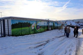 Aber die Arbeit hat sich gelohnt - es ist ein fantastisches Bild geworden! Viele Passanten und Anwohner haben ihm das schon bestätigt und es wird auch lange halten: mit 25 Jahren kann man durchaus rechnen. So lange können jetzt also Spaziergänger und Wanderer auf ihrem Weg von oder zum Stachelsrain das riesige Panorama mit Heinrichsbacher Hütte (Frühling), Ruppberghütte (Sommer) und Schneidergrundhütte (Herbst) genießen - und natürlich die schöne, verschneite Winterwelt. Wie sich das im nächsten Sommer bei 30 Grad anfühlt, darauf sind wir gespannt …