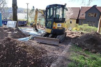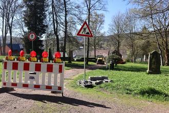 Auf dem historischen Zellaer Friedhof, unmittelbar neben dem Rathaus, finden gerade umfangreiche Bauarbeiten statt. Hier werden aktuell Rohre zur Entwässerung verlegt.