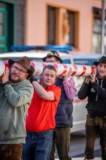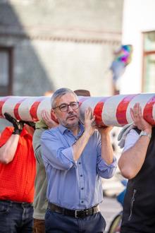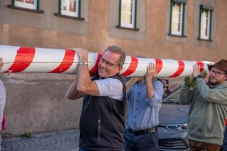 „Gemeinsam schafft man auch große Dinge - den großen Maibaum oder auch ein gemeinsames Oberzentrum, so wie wir es mit der Kommunalen Arbeitsgemeinschaft anstreben“, sagte Bürgermeister Richard Rossel, der sich über die Anwesenheit seiner KAG-Kollegen freute. Lediglich auf Thomas Schulz, Bürgermeister von Oberhof, musste die Gruppe dieses Mal verzichten. „Gemeinsam sind wir stark, jetzt heißt es Ärmel hoch und anpacken“, machten die Bürgermeister deutlich - und die Kärmesburschen zeigten es mit ihrem toll geschmückten Maibaum.