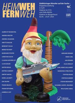Bis zum 25. Juli findet in den beiden städtischen Galerien in Suhl und in Zella-Mehlis das erste Mal seit Bestehen beider Einrichtungen eine gemeinsame Doppelausstellung zu einem Thema statt. Unter dem Ausstellungstitel „Heimweh-Fernweh: Auf der Suche“ haben sich knapp 40 Künstler, die in Südthüringen leben und arbeiten an der Ausschreibung beteiligt. Die Werke von 29 Künstlern sind nach Auswahl einer Jury in der Ausstellung zu sehen.