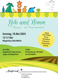 Ob Stöbern, Schätze suchen, auf dem Hof des Bürgerhauses Kaffee trinken oder den Trubel genießen - alles ist möglich am Sonntag, den 18. Mai. Der Gib- und Nimm-Markt öffnet seine Türen um 13 Uhr und lädt alle Zella-Mehliser und Gäste ein, dabei zu sein.