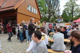 Die Veranstaltung war als Alternative zu den vorangegangenen Baby-Empfängen gedacht, die sonst jeweils am Ende des Jahres stattgefunden hatten. „Wie wir sehen, geht unser Plan auf. Schön dass Sie alle unsere Einladung angenommen haben“, so der Bürgermeister, der sich freute, dass Zella-Mehlis ganz offensichtlich Zukunft hat! Rund 360 Kinder waren in dem Zeitraum Juli 2018 bis Dezember 2022 zur Welt kommen - 550 Gäste hatten zugesagt. Entsprechend groß war das Gewimmel zwischen Hüpfburgen, Bastelstand, Kinderschminken, vielen Leckereien und der großen Bühne. Hier verlas der Bürgermeister interessante Fakten: Die häufigsten Namen in diesem Zeitraum waren bei den Mädchen Elena, Lilly, Lilith, Lilo, Martha, Melina, Mila, Milena, Mia, Miley und Nele und bei den Jungs Erik, Fiete, Damian, Emilias, Matti, Matteo. Der Anteil der Jungs lag ein bisschen höher. Insgesamt sind vier Zwillingspaare zur Welt gekommen, davon 2018 und 2022 jeweils eins und 2020 gab es zwei Mal Zwillinge in Zella-Mehlis.