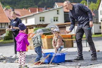 „Neben den Teams der Kindergärten, des Kinder- und Jugendfreizeittreffs sowie des Jugendbeirates wollen wir uns vor allem bei den Vereinen und bei den Gastronomen bedanken, die mit ihren Leckereien die Besucher versorgt haben“, sagt Fachbereichsleiterin Annika Ansorg. Von der Oberhofer Höhe kam extra der Eiswagen vom Haus Flora vorbei, den Kaffee und Kuchen stellten die Bäckerei Müller und das Café Otto bereit, die herzhafte Versorgung übernahmen Vereinsmitglieder der WSG Zella-Mehlis e. V., des FC Zella-Mehlis e. V. sowie das Team von Kid´s Catering Reussel. „Ein solches Fest, ist ohne die Unterstützung vieler helfender Hände nicht umsetzbar.“ Mit diesen Worten dankt Frau Ansorg, insbesondere den Mitgliedern der Freiwilligen Feuerwehr Zella-Mehlis, der Jugendfeuerwehr und dem Baubetriebshof, der sogar Spielsand für die Kleinsten organisiert hatte. „Sehr gefreut haben wir uns auch über die Mitwirkenden beim Rahmenprogramm, was diesen Nachmittag zu einem stimmigen Familienerlebnis machte, u. a. durch die Teilnahme der Trommelgruppe vom Tanzhaus Benshausen.“
