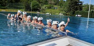 Am 27. Mai begann die Badesaison 2023 für die Eisbären im Freibad "Friedrich Ludwig Jahn" in Benshausen, bei einer Wassertemperatur von 19° C (Luft: 16° C). Conny Kretzer begrüßte unsere "Kleine Elke" (Elke Kirchner) als erste Besucherin. Acht weitere Eisbären folgten, wie auf dem Foto zu erkennen ist. Die zehnte Besucherin kam übrigens aus Ebertshausen.