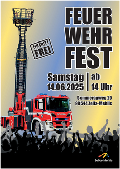 Am 14. Juni ist bei der Feuerwehr im Sommerauweg in Zella-Mehlis jede Menge los. Ab 14 Uhr gibt es eine Fahrzeugschau sowie Spiel und Spaß für Groß und Klein. Eine Einsatzübung steht auf dem Programm. Musik hat DJ Phil im Gepäck und für das leibliche Wohl ist bestens gesorgt. Kommt vorbei und feiert mit. Der Eintritt ist frei.