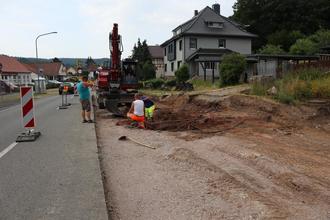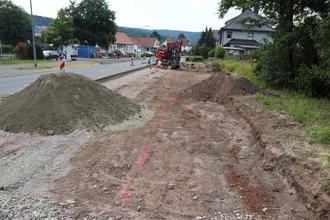 Eine umfangreiche Baumaßnahme findet gerade im Ortsteil Benshausen statt. Dort wird die neue Bushaltestelle an der Benshäuser Straße (Höhe Schulstraße) mit einer 80 Meter langen Bushaltebucht ausgestattet. Dadurch kann der Verkehr künftig ganz normal weiterfließen, auch wenn ein Bus an der Haltestelle steht.