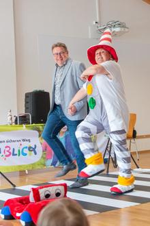 Eröffnet wurde die Veranstaltung von Bürgermeister Torsten Widder, der die Vorschulkinder herzlich begrüßte. Für große Begeisterung sorgte das Maskottchen Ampelinchen, das gemeinsam mit den Kindern Lieder zur Verkehrserziehung sang und tanzte - ein gelungener Auftakt für einen ereignisreichen Vormittag.