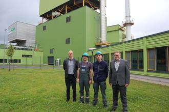 Marius Stöckmann, Geschäftsleiter des ZASt, Ausbildungsleiter Rico Völker, Schichtelektriker Jamie Hänisch und Bürgermeister Torsten Widder.