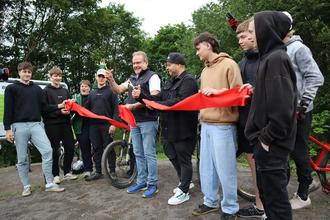 „Das ist eine supertolle Line! Wenn man sowas zu Hause hat, braucht man nichts anderes“, rief einer der jungen Fahrradfahrer bei der Eröffnung des Bike-Areals nach den ersten Test-Runden. Gemeinsam mit dem Team von RadQuartier aus Rehau, das dieses Vorhaben im Auftrag der Stadt umgesetzt hat, und mit den Jugendlichen, die die Idee zur Anlage hatten, hat Bürgermeister Richard Rossel die Strecke am 22. Juni freigegeben.