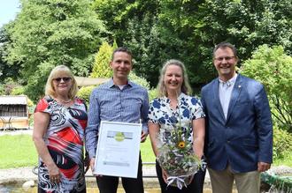 Gabi Schneider, Leiterin der TI, Sebastian und Susen Renner vom Hotel Waldmühle und erster Beigeordneter Thomas Bischof (von links).