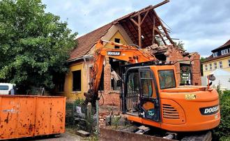 Jetzt hat dessen Abriss begonnen, die entsprechende Maßnahme hatte der Bauausschuss in seiner letzten Sitzung vor der Sommerpause einstimmig vergeben. Die Maßnahme wird vom Freistaat zu 100 Prozent gefördert. Nach dem Rückbau und der Entsorgung sämtlicher baulicher Anlagen wird demzufolge die Baugrube zu verfüllt und das Grundstück von Bauschutt und Wildwuchs zu beräumt, so dass dort Parkplätze für das benachbarte Dorfgemeinschaftshaus angelegt werden können.