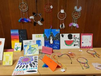 Die Ferienkinder waren entsprechend ihren Wünschen in zwei Gruppen aufgeteilt: Die erste Gruppe widmete sich dem Thema Medien, die anderen der Kreativität. Die erste Gruppe absolvierte im Freizeittreff ihre Aufgaben: Fotografiere dich mit einem Wahrzeichen von Zella-Mehlis und Erstellt einen Trailer zu unterschiedlichen Themen. Die Kreativ-Gruppe in der Bibliothek bastelte Traumfänger, Booknook (kleine Räume, die in die Lücke in einem Bücherregal passen) und erstellte Bilder auf Leinwand.
