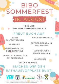 Am 18. August findet von 10:00 Uhr - 16:00 Uhr das große Bibo-Sommerfest auf dem Rathausvorplatz statt!